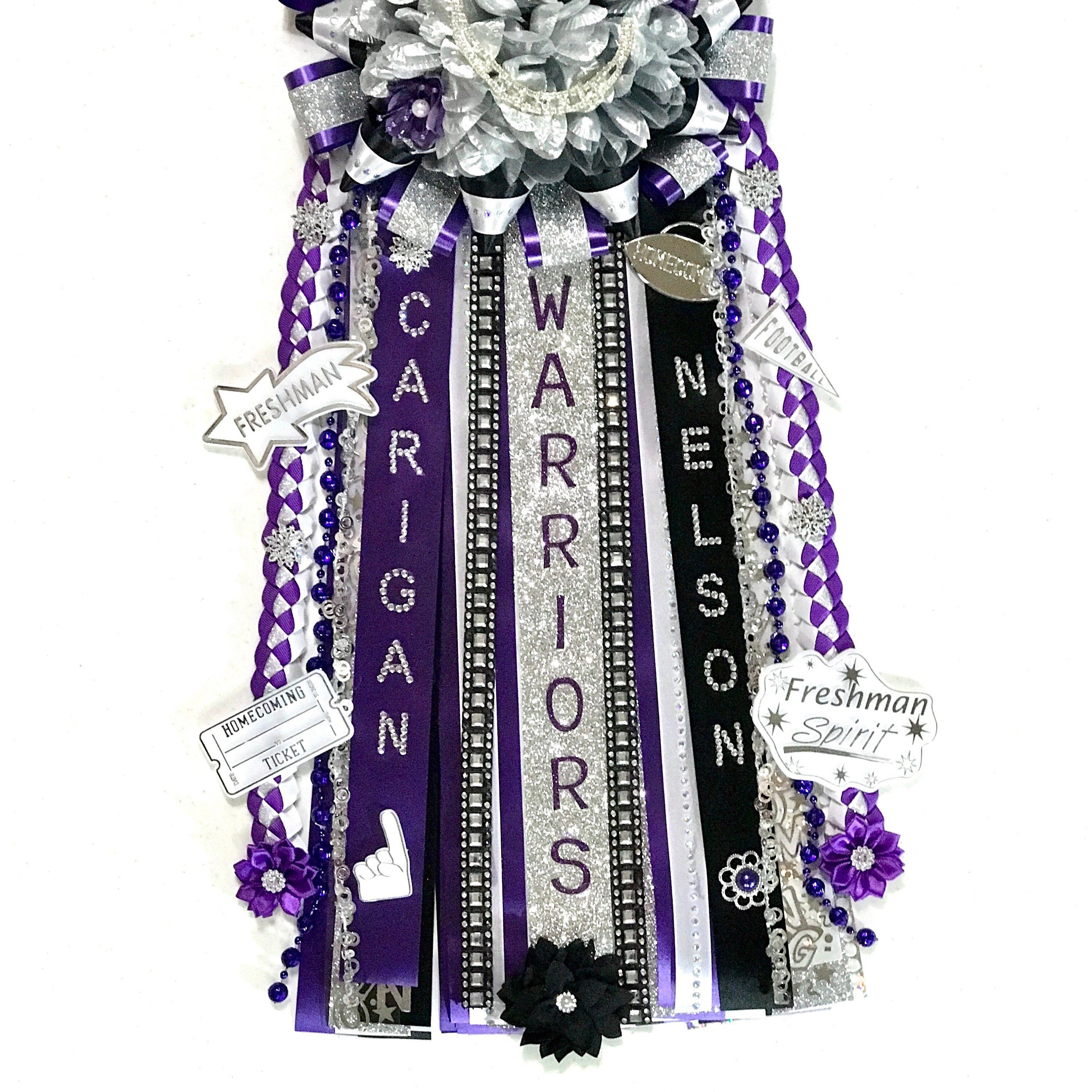 Bling Homecoming Mum Rhinestone Initial Purple Black Silver Etsy Canada